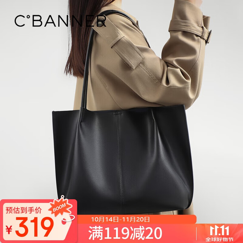 千百度(C.BANNER)牛皮包包女包托特包大容量单肩斜挎轻奢生日礼物高级感送女友老婆