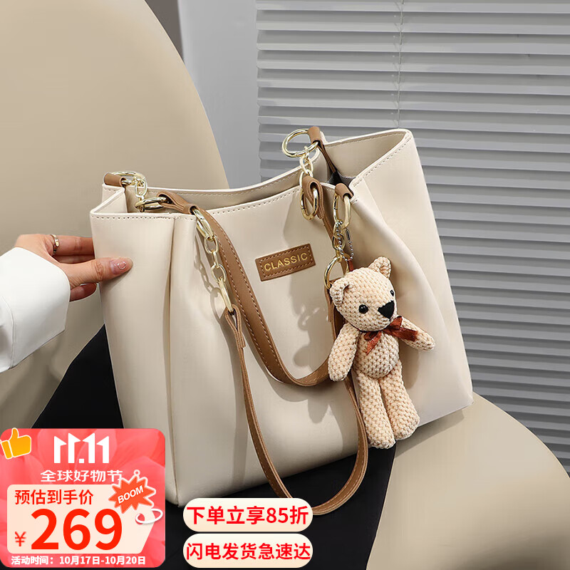 千百度(C.BANNER)牛皮包包女包大包托特包大容量单肩通勤生日礼物高级感送女友老婆