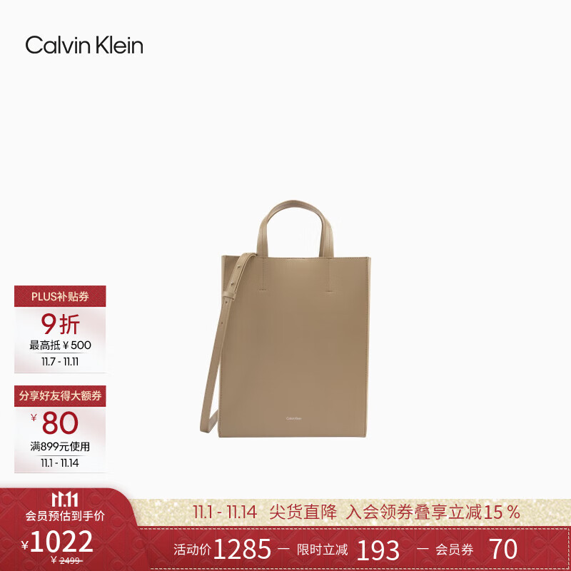 Calvin Klein休闲通勤琴谱包礼物真皮牛皮包包CK女包纸袋包托特包4F3002G PBF-卡其 OS