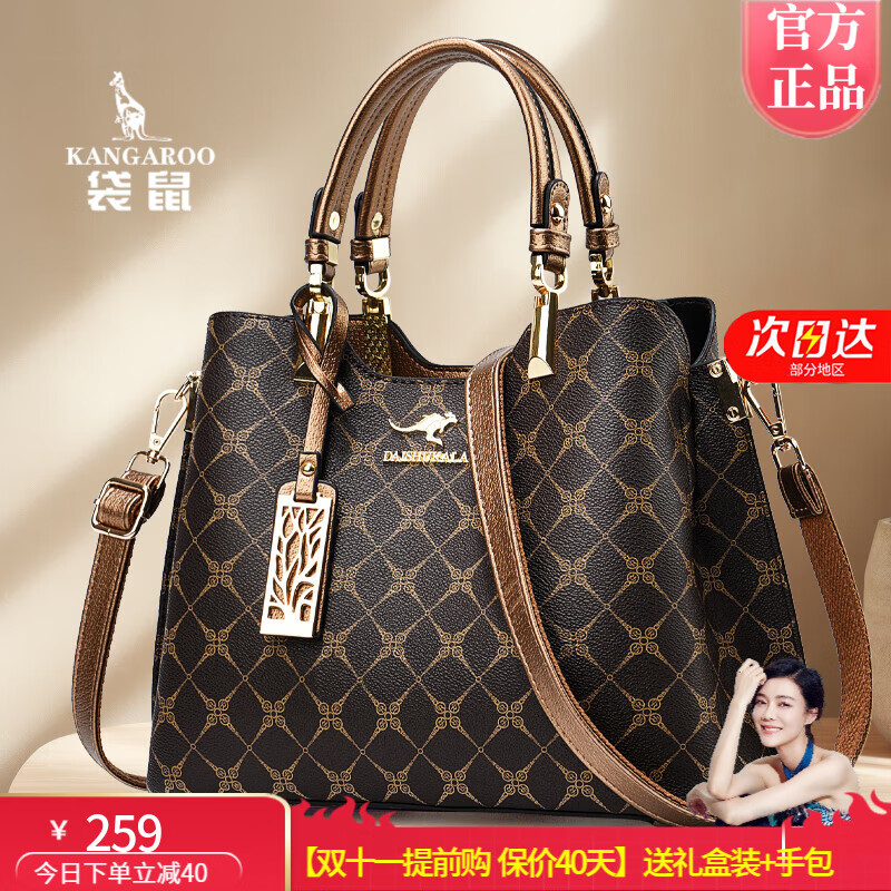品牌袋鼠时尚手提包女包包新款2025旗舰店真皮包斜挎包中年妈妈包