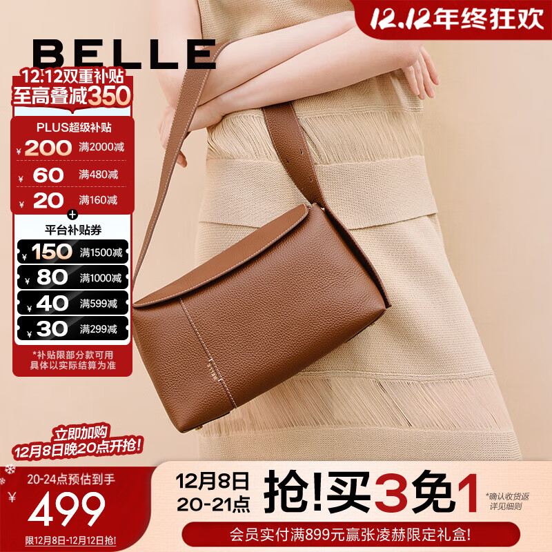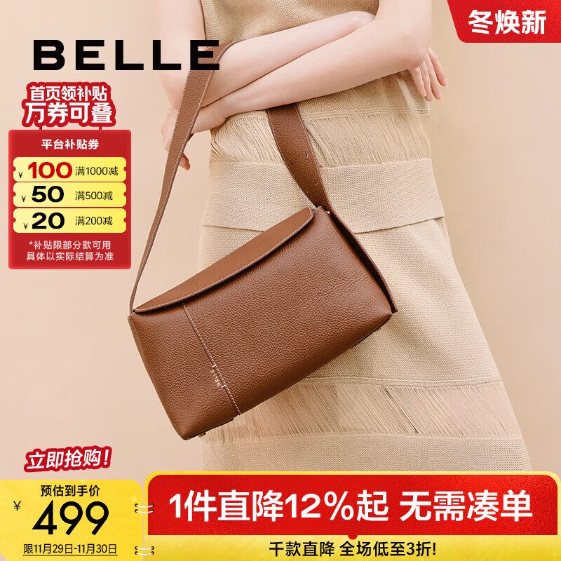百丽头层牛皮包质感小众设计感斜挎小方包X9313AX4 橡木棕 F