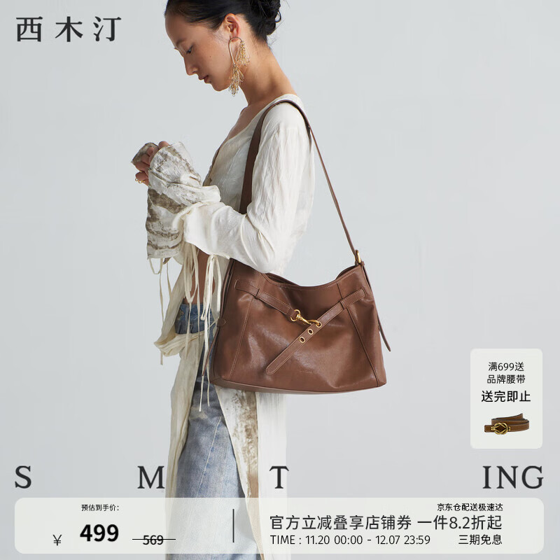 西木汀 许久未见 通勤托特包新款秋冬大容量牛皮包包女包 咖啡色