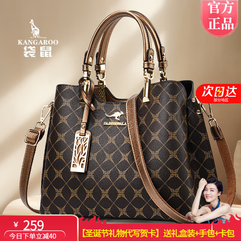 袋鼠卡拉2025新款品牌真皮包包女士包手提包斜挎女包圣诞节礼物实用送老婆 古铜色(送礼盒装+手包)