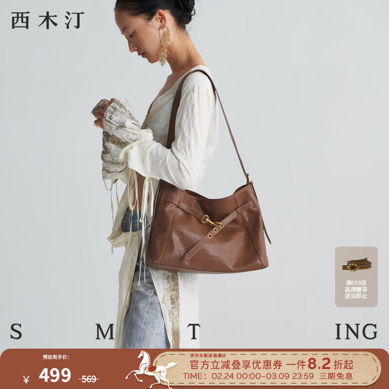 西木汀 许久未见 通勤托特包新款大容量牛皮包包女包 新年礼物 咖啡色