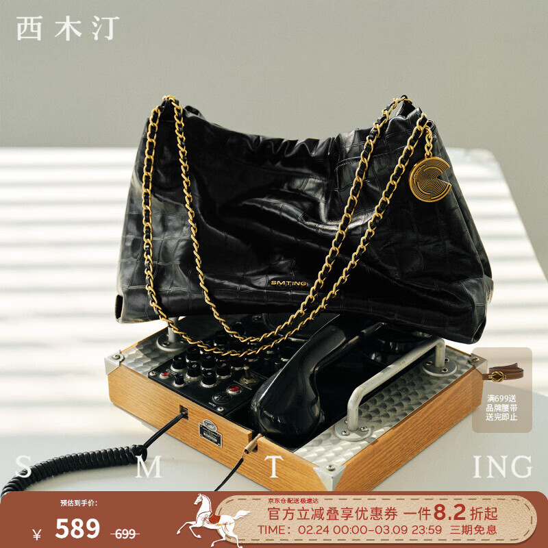 西木汀 悠途 头层牛皮包包女托特包大容量链条包 新年礼物 深邃黑 中号