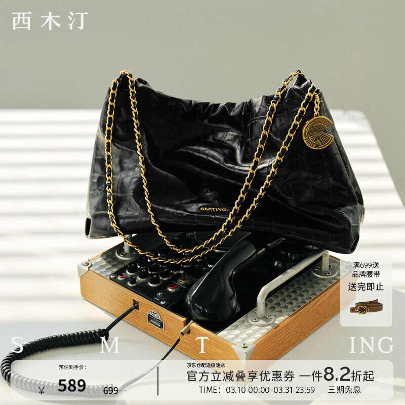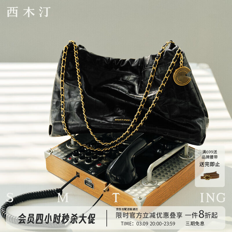 西木汀悠途 头层牛皮包包女托特包大容量链条包 女神节礼物 深邃黑 中号