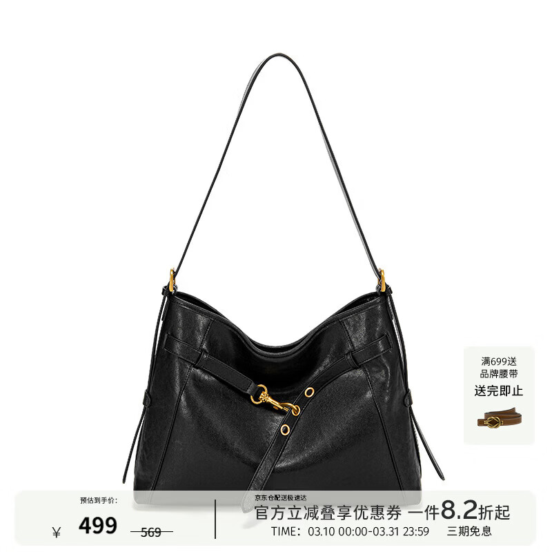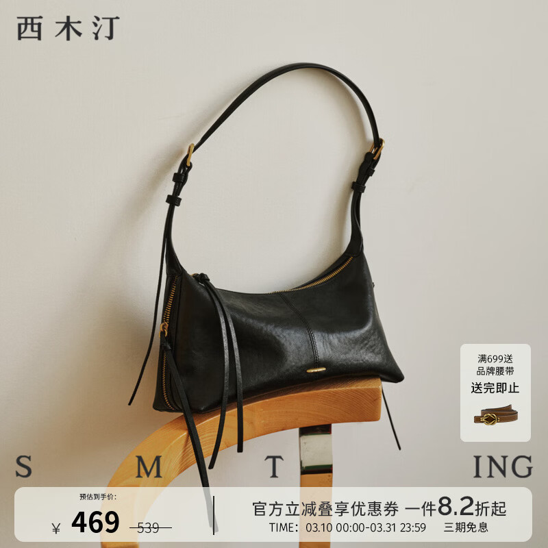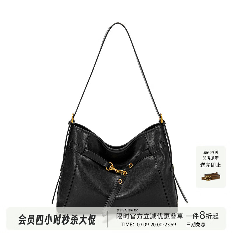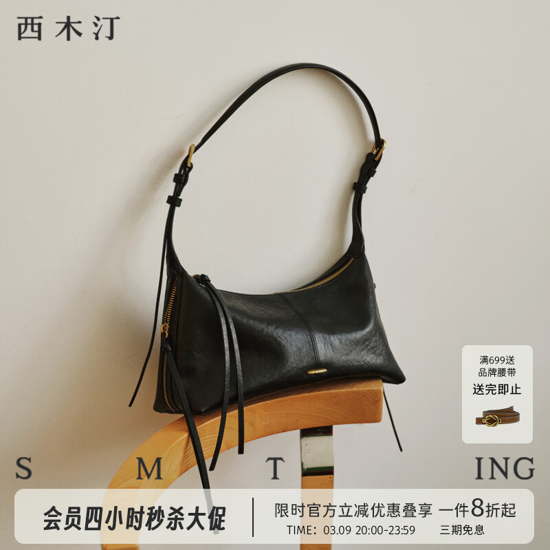 西木汀 踪迹 头层牛皮包新款女轻奢单肩包极简hobo包包女包生日礼 深邃黑(不含挂件)【头层牛皮】