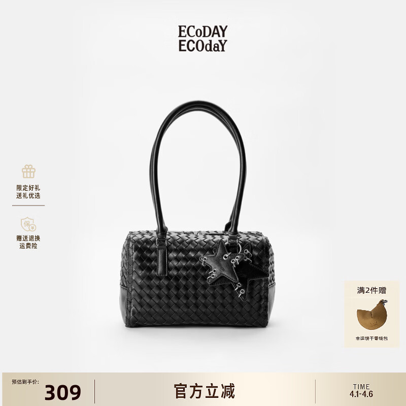 ECODAY编织包公文包单肩手提腋下包波士顿包送女友生日礼物 黑色 限定礼盒