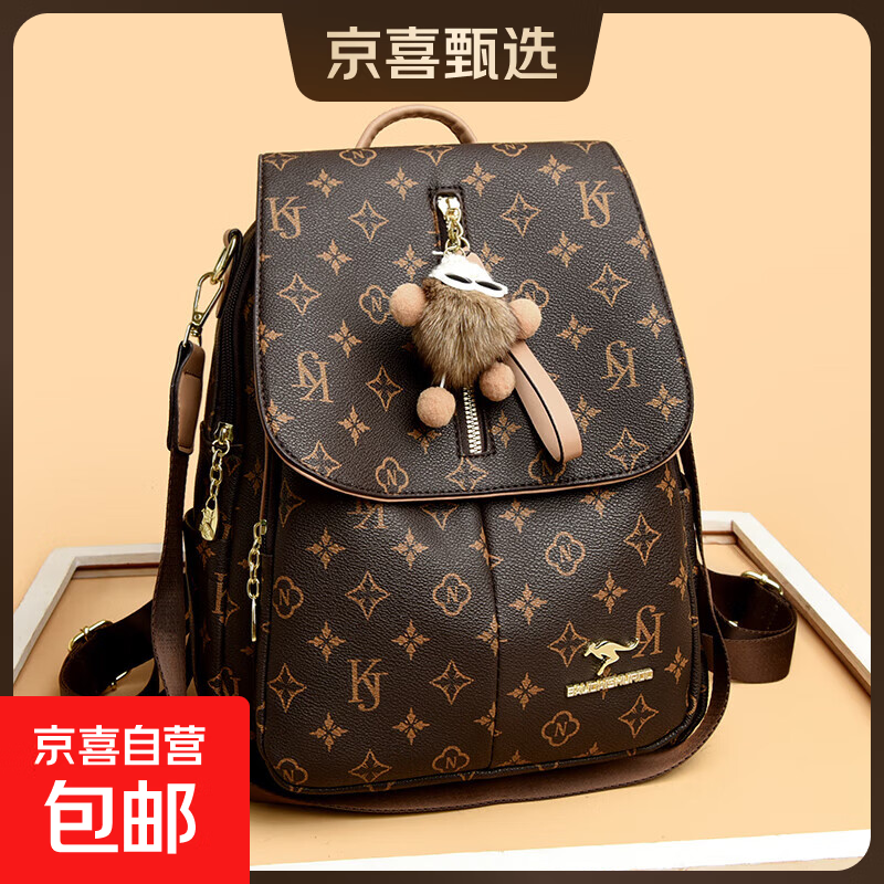 正品袋鼠双肩包女皮包2025新款轻便时尚百搭妈妈软皮休闲旅行背包