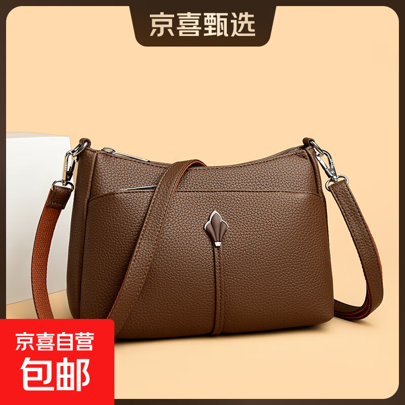真皮女士包包斜挎包时尚中年妈妈软皮包多层软皮百搭大容量单肩包 浅棕色