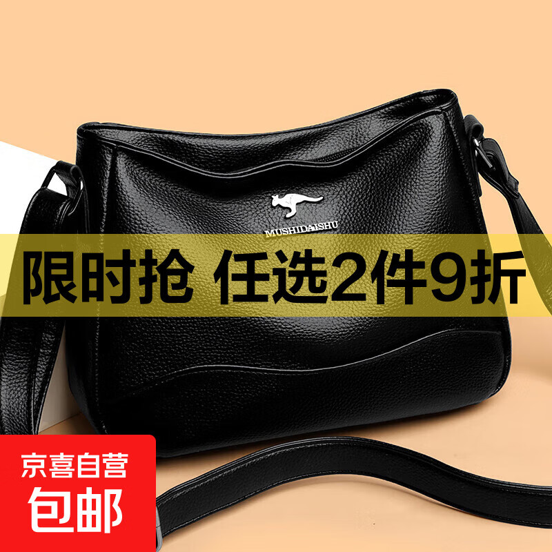 袋鼠女包2025新款妈妈包大容量百搭单肩斜挎包中老年包包女真皮包