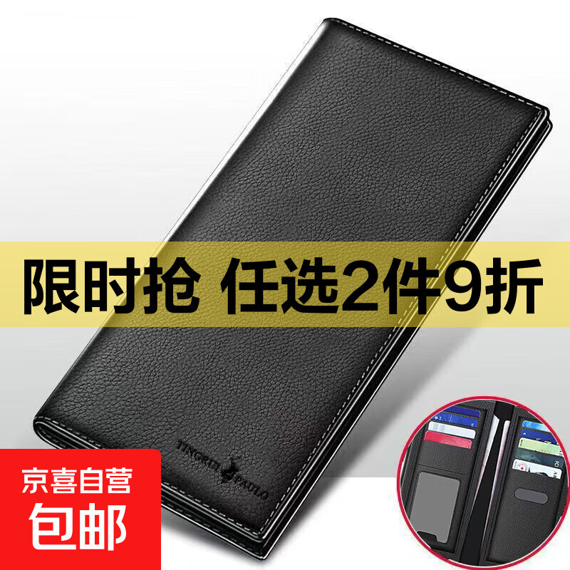 新款男士钱包男长款皮夹子软皮男款大容量皮包超薄多功能青年手包 黑色压印
