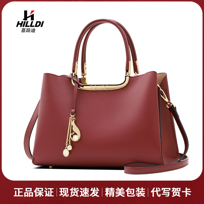 袋鼠卡拉结婚送品牌包包女包轻奢牛皮包2025新款手提包送妈妈婆婆斜挎婚包 酒红色(礼盒装+手包卡包吊坠)
