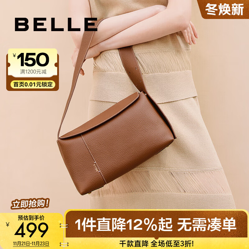 百丽流浪摩卡反绒麂皮包包女hobo大容量斜挎托特饺子包8562ACX5