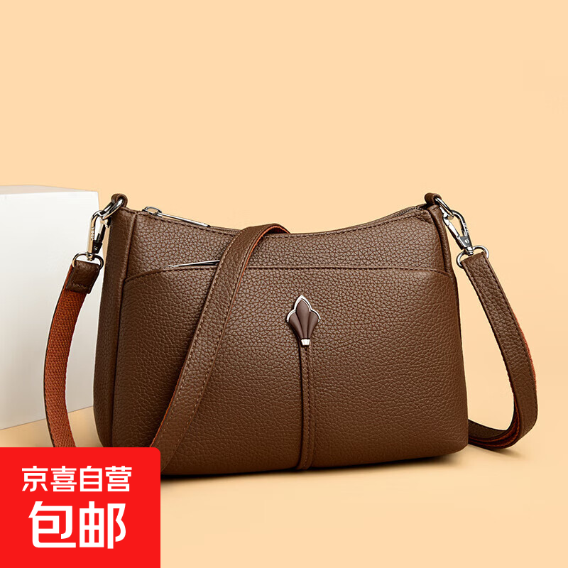 真皮女士包包斜挎包时尚中年妈妈软皮包多层软皮百搭大容量单肩包 浅棕色