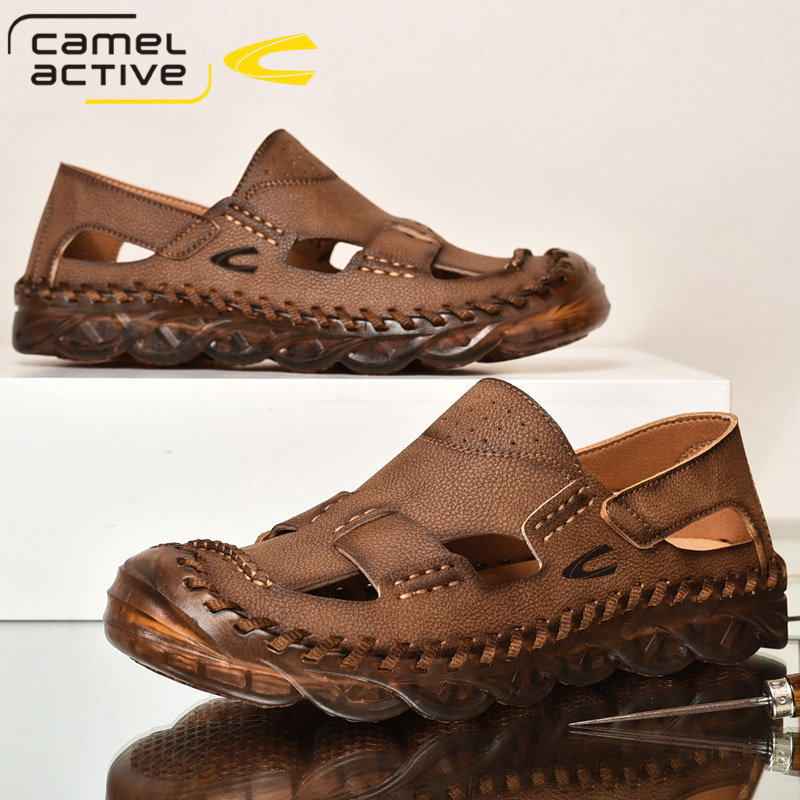 德国骆驼动感凉鞋男新款真皮包头凉鞋潮流沙滩鞋洞洞外穿个性