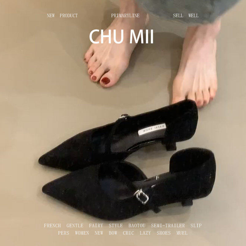羊皮版!法式优雅细跟包头凉鞋女高级感真皮包鞋不累脚尖头高跟鞋