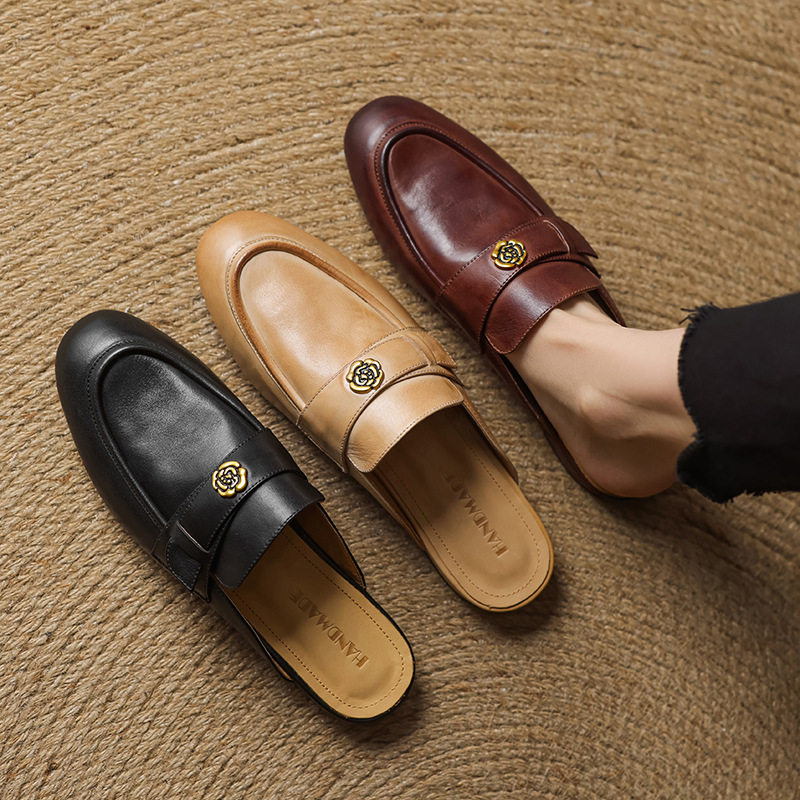 2025夏季新款文艺森系真皮包头镂空凉鞋女手工浅口牛皮低跟女鞋潮