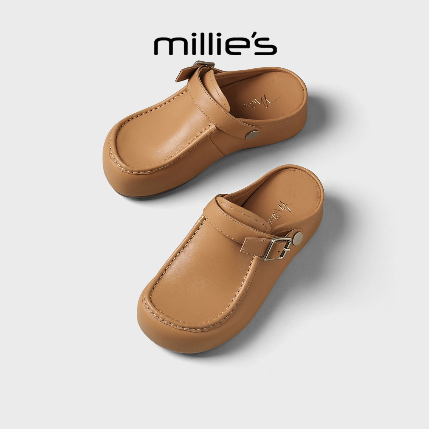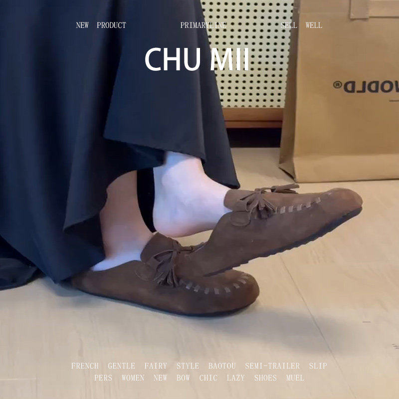 羊皮版~真皮包头半拖鞋女懒人一脚蹬厚底勃肯鞋复古百搭穆勒鞋