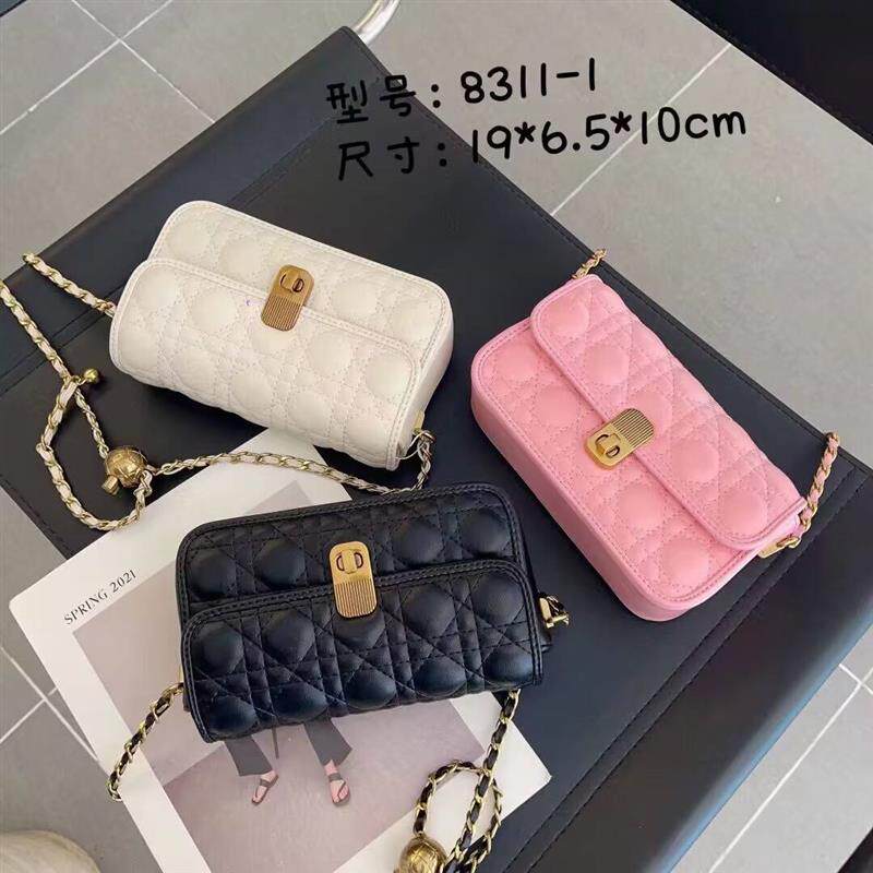真皮包包小方包2023新款时尚牛皮斜挎单肩包小香风金球菱格链条包