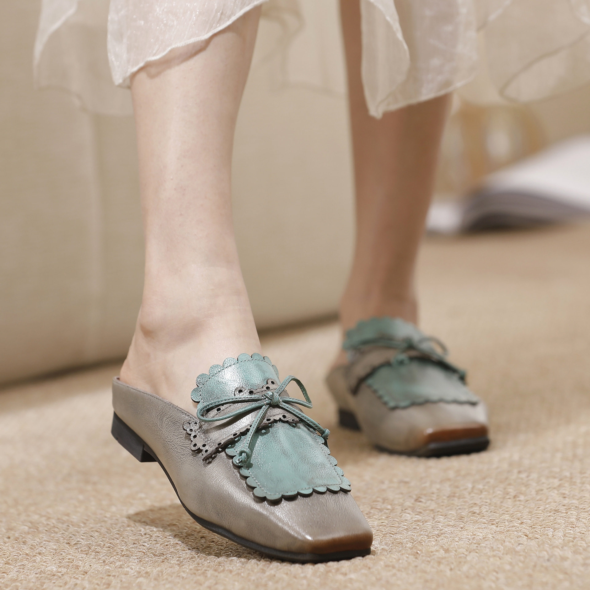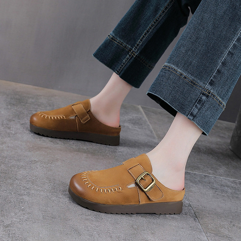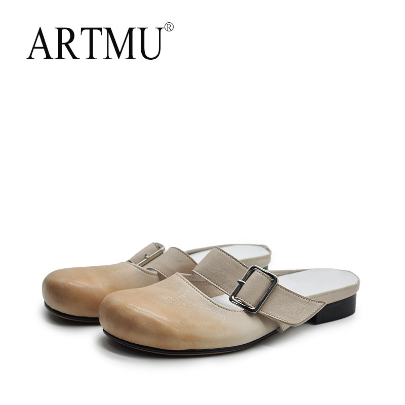 Artmu阿木原创真皮包头拖鞋女夏外穿2025新款皮带扣平底半拖鞋