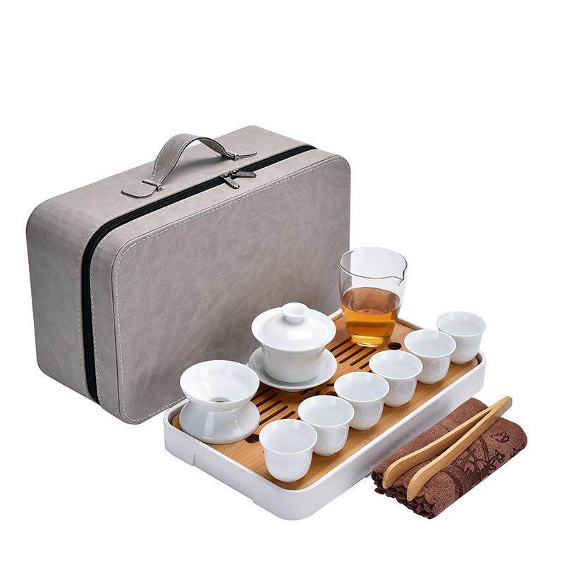 硬皮包功夫茶具旅行大套组高白瓷茶艺套装密胺茶盘