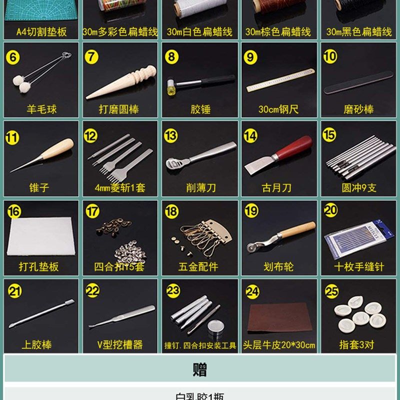 【基础版】皮革工具套装手工DIY皮具老树皮包钱包手工缝制皮革艺