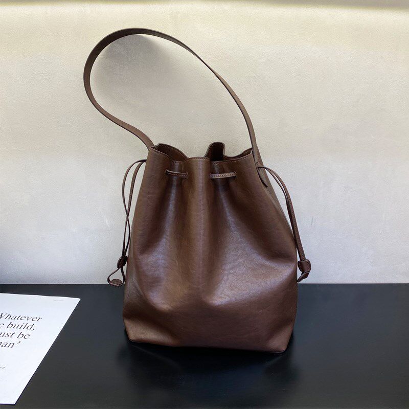 裘&&真慵懒遇水桶包女真皮腋下单肩包复古通勤包头层植鞣牛皮包包