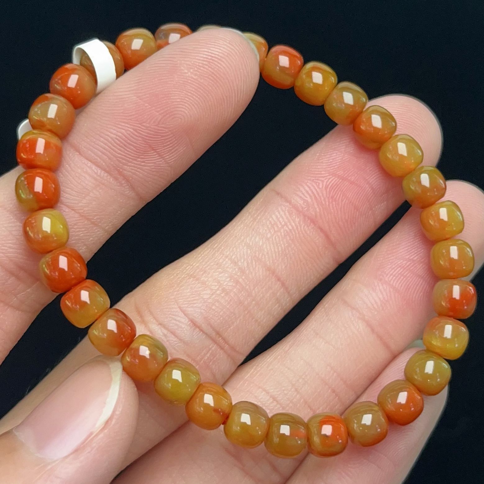 406A01凉山南红高品黄皮包浆老型单圈手串