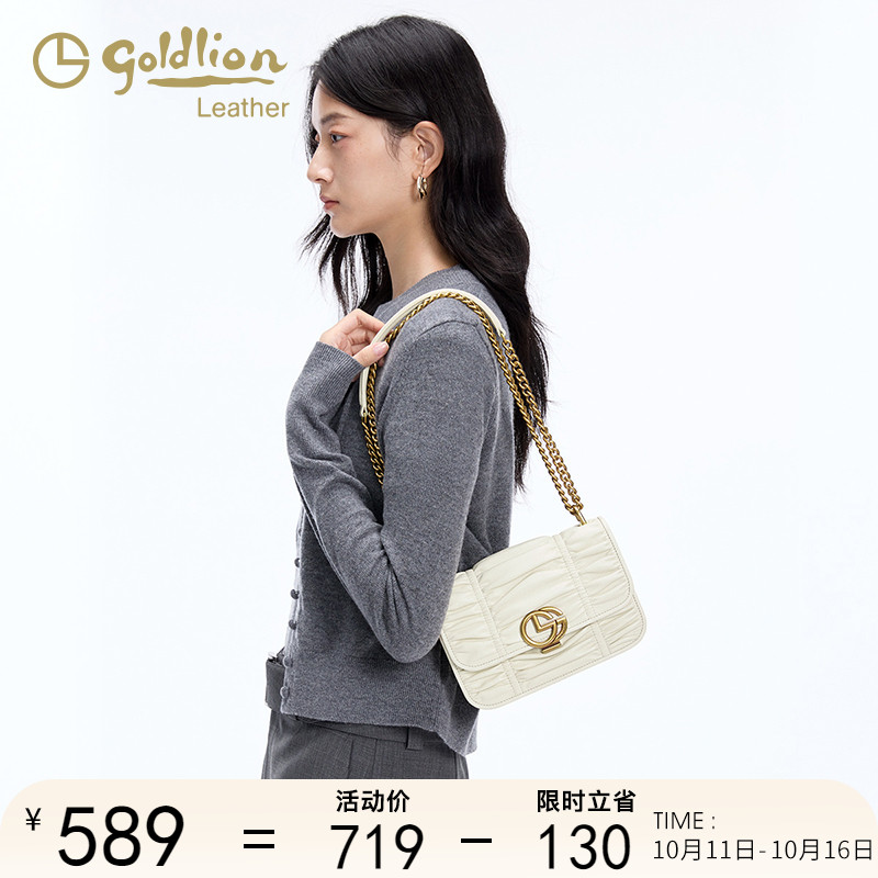 金利来2025新款女士真皮包包斜挎包时尚轻奢褶皱链条单肩小方包包