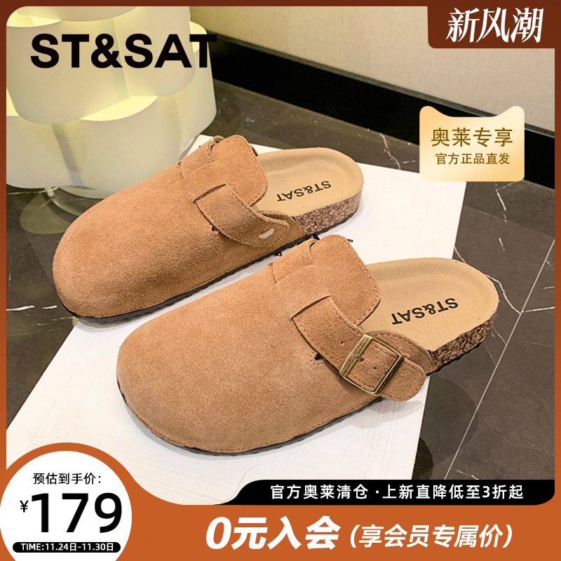 星期六真皮包头勃肯半拖女新款韩版百搭外穿钓鱼鞋懒人一脚蹬