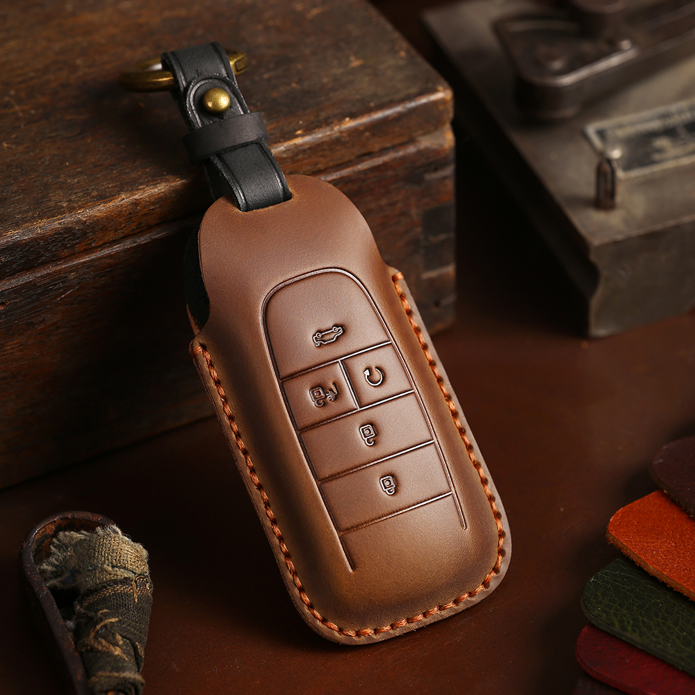 单缝线广汽传祺车钥匙套新款M8影豹GM8埃安GS8专用手工真皮包壳扣