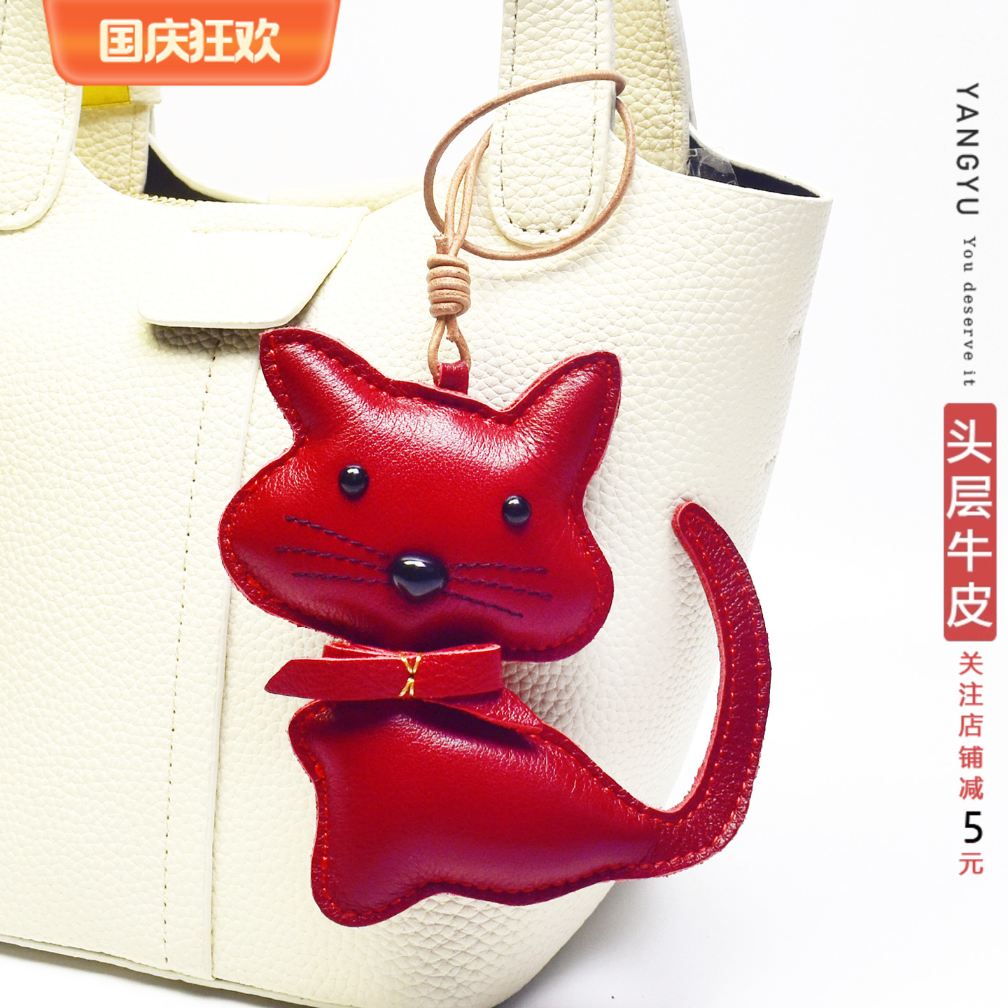 真皮乖巧猫咪~北欧ins汽车钥匙扣牛皮包挂饰挂件可爱动物手账书签