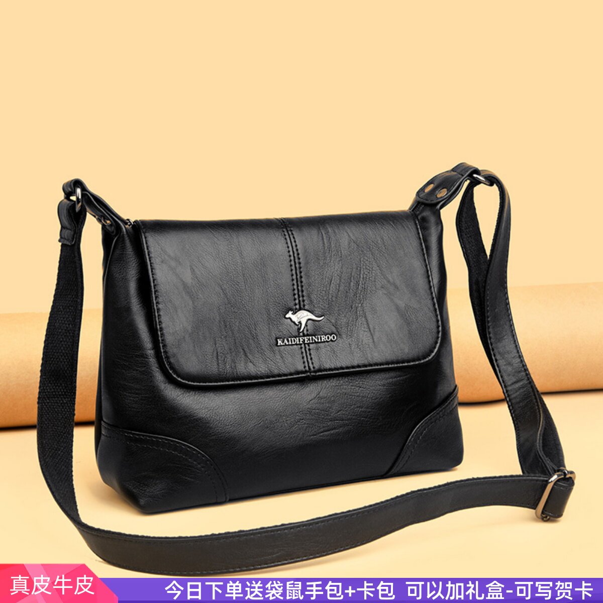 正品袋鼠皮包女包斜挎包女士2025新款小包软皮单肩妈妈手提包时尚