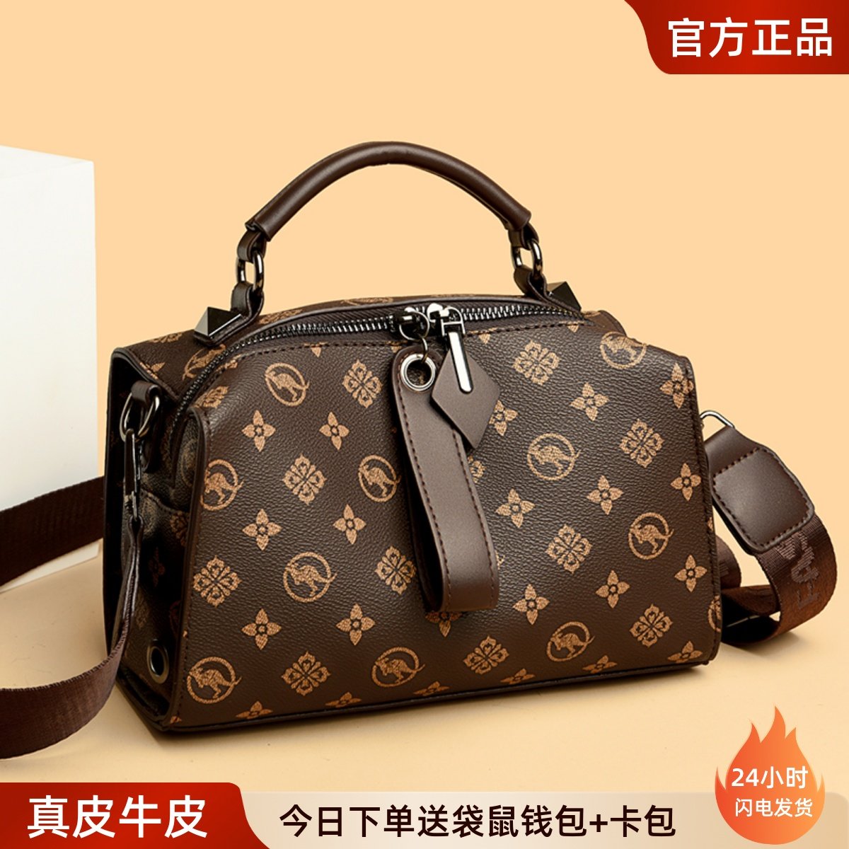 袋鼠正品包包2025新款真皮女士手提包大容量斜挎包送妈妈软牛皮包