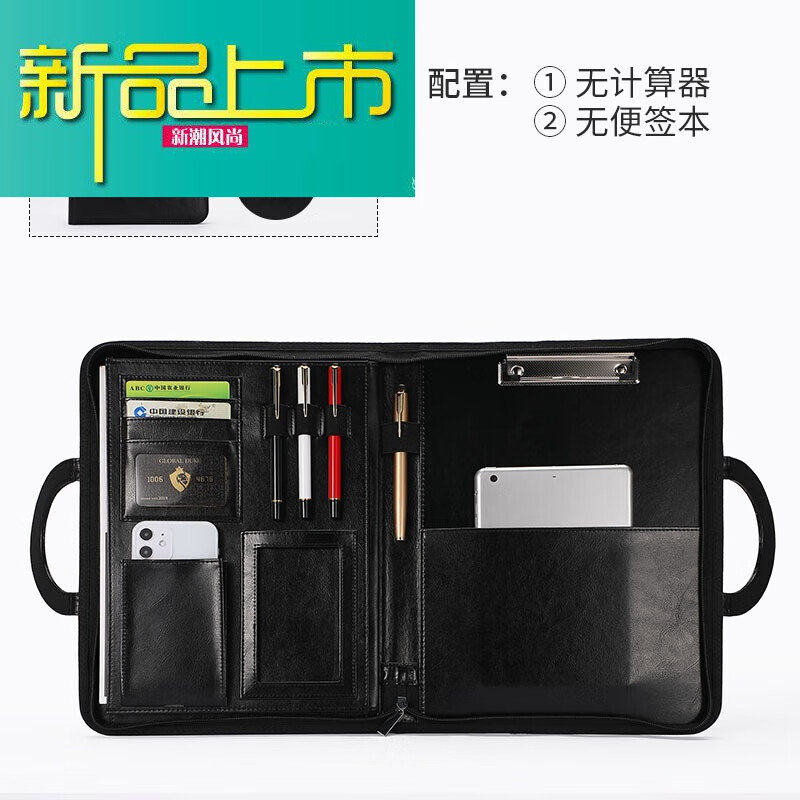 MEDYST4文件夹板试卷收纳皮包带办公用品手提包交房包签约本文具 新黑色手提包无搭配