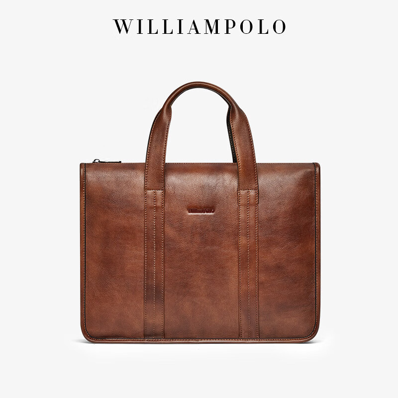WILLIAMPOLO英皇保罗公文包男士手提包公文包男商务办公包14寸电脑包牛皮包包 棕色 大包14英寸