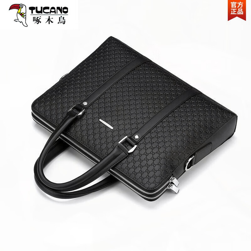 啄木鸟(TUCANO)青年商务男包手提包男士公文包男款皮包男横款商务包手拎包男真皮 黑色(配肩带)