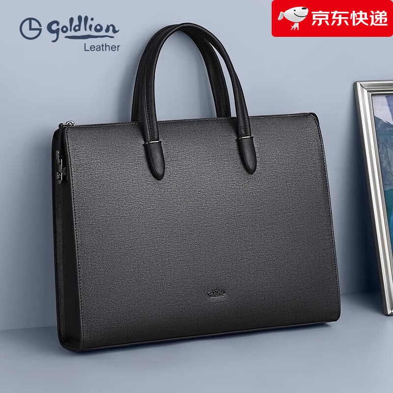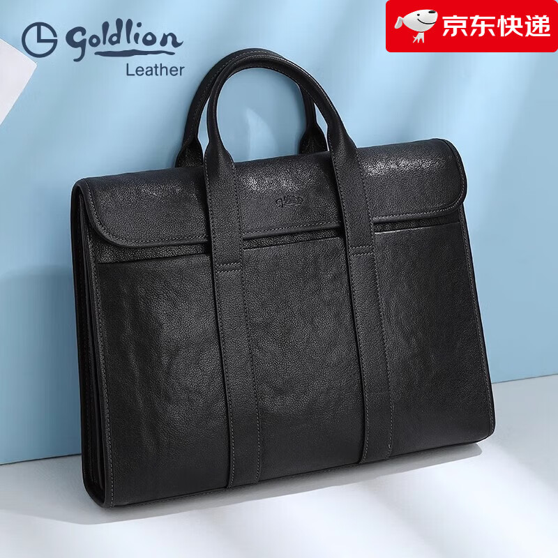 金利来(Goldlion)男包手提包商务头层牛皮包盖式办公包真皮差旅男士公文包轻奢七夕 黑色 默认