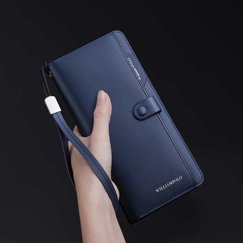 长款钱包男士零钱防盗手拿包大容量青年多功能皮包卡包 蓝色