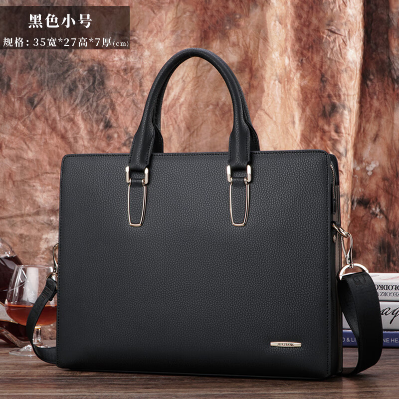 爵匠(JUEJIANG)商务包男手提包男士公文包男商务办公皮包简约青年真皮男包单肩包 小号黑色-配密码锁 默认规格1