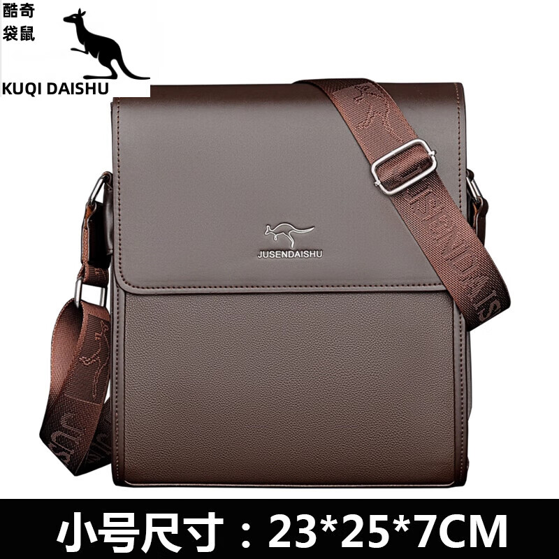 酷奇袋鼠(KUQIDAISHU)公文包男商务挂包皮包真皮中年背包休闲男包男士包包单肩包斜挎包 竖款小号棕色单包 默认规格1