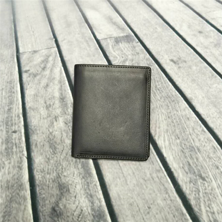 真皮外贸春新款复古皮包头层植揉牛皮男士时尚竖款短款钱包钱夹 黑色