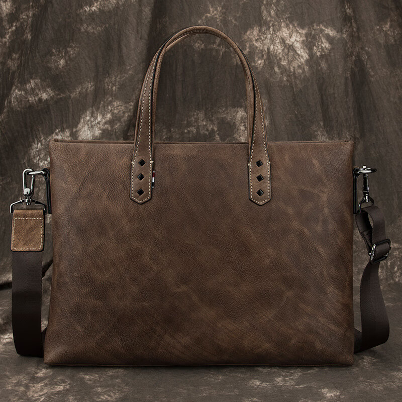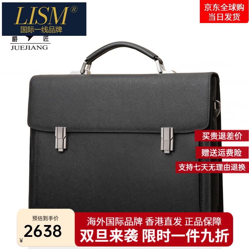LISM国际一线品牌大容量手提包男商务包真皮横款牛皮包男士公文包男手 黑色-(头层牛皮) 默认规格1