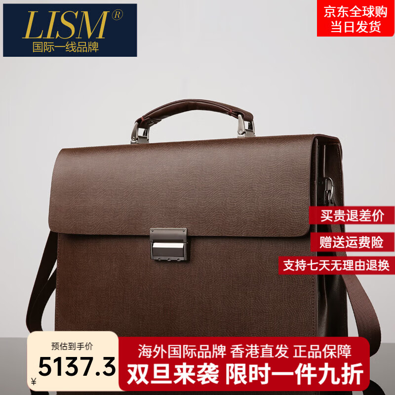 LISM国际一线品牌商务男包手提包带密码锁公文包男款大容量牛皮包公务 啡色 默认规格1
