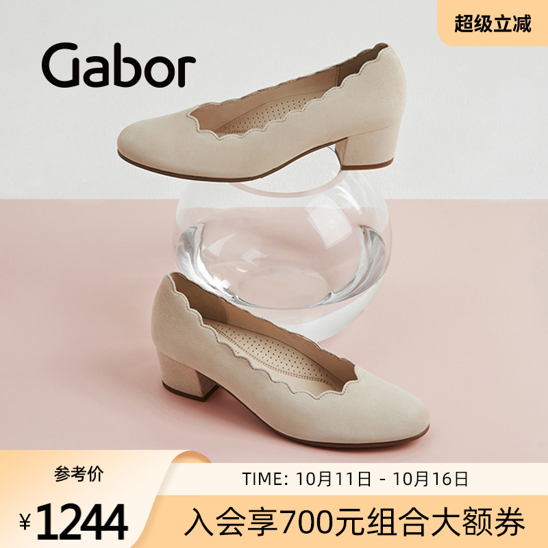 Gabor德国嘉步62221单鞋 水波纹鞋口皮包跟优雅单鞋