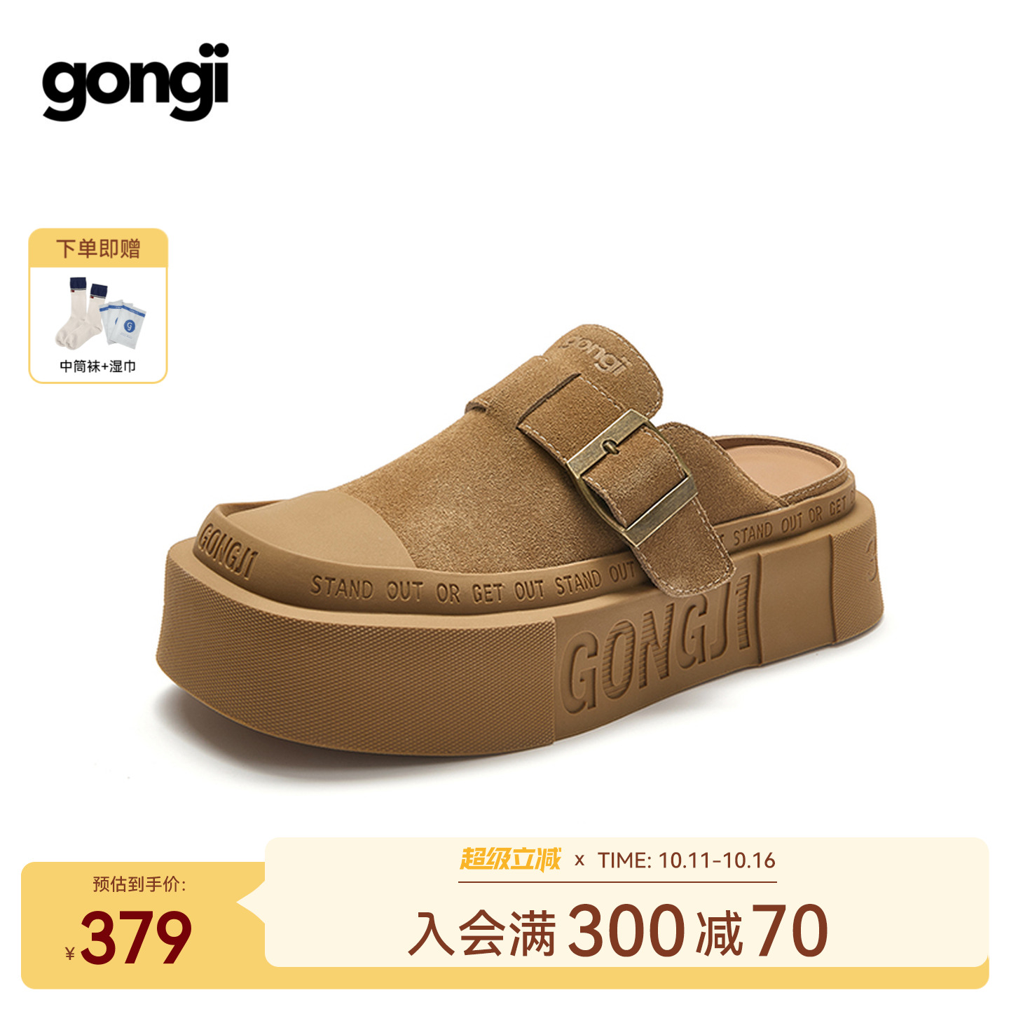 GONGJI勃肯鞋半拖男女2025新款外穿厚底真皮包头拖鞋一脚蹬懒人鞋