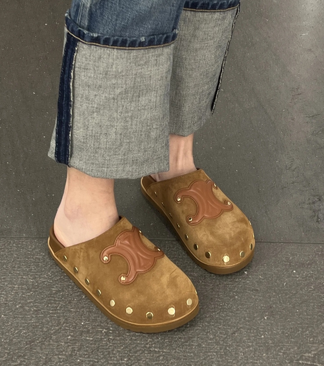 2025早春ss凯旋门勃肯鞋铆钉真皮包头拖鞋女外穿2025春新厚底穆勒