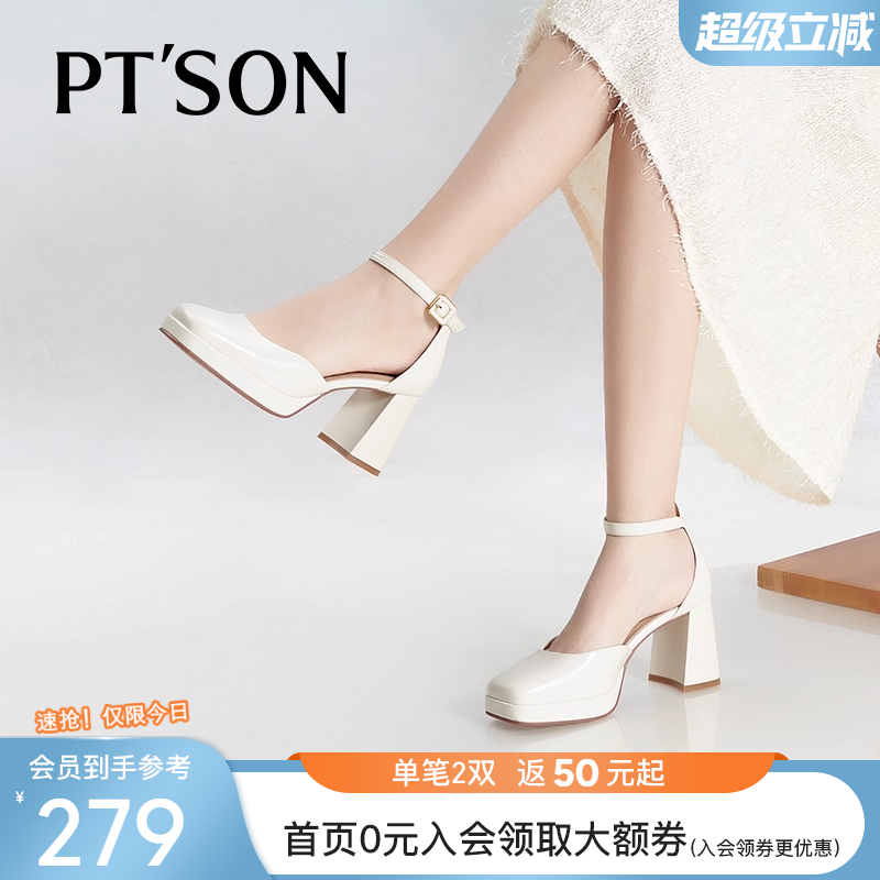 商场同款百田森真皮包头凉鞋女春夏新款防水台中空半凉鞋女