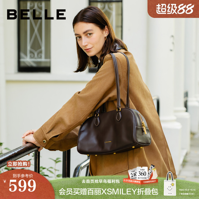 百丽反绒麂皮包包女2025新款通勤大号单肩保龄球波士顿包BL862DX5